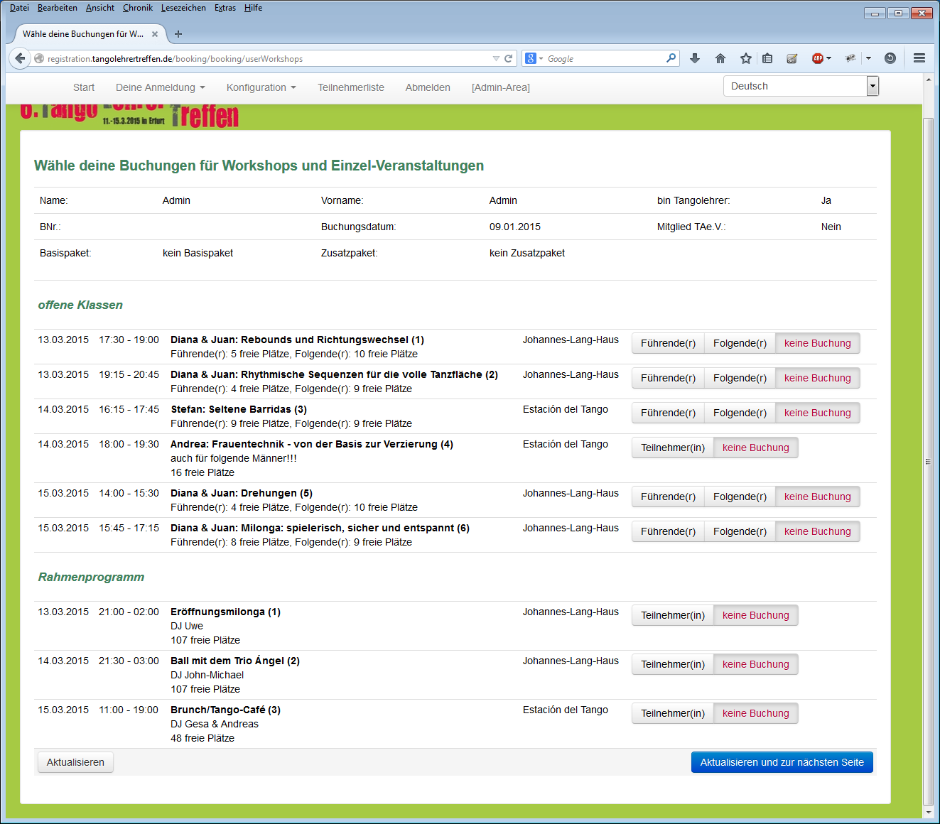 06.12. Milonga - Tangocafé - Flohmarkt - Silvester - Halbmarathon